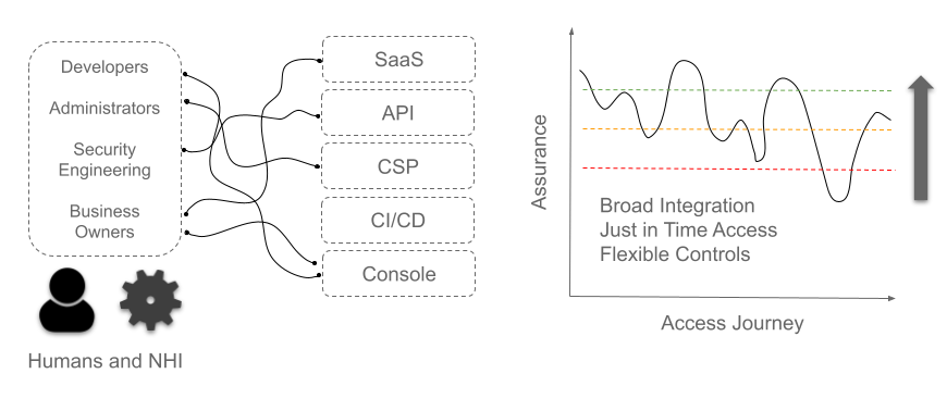 This core problem has not been solved; it has increased in scope due to the different personas requiring access to a broader range of resources. We need to include efficiency optimization for access request, credential issuance and just in time processing, not just for standard users but for services, humans, engineers and developers too.
